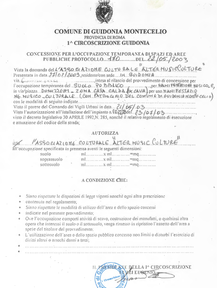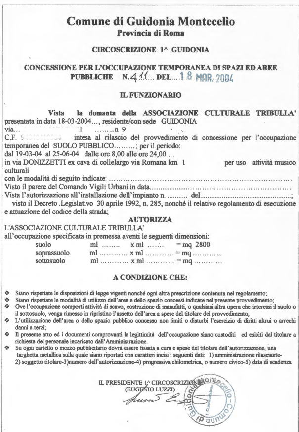Pubblichiamo qui, omettendo i dati sensibili, copie di autorizzazioni comunali e provinciali ottenute dalle associazioni che proponevano fantastici appuntamenti musicali nel bel mezzo del pascolo bovino recentemente scippato dal patrimonio comunale.