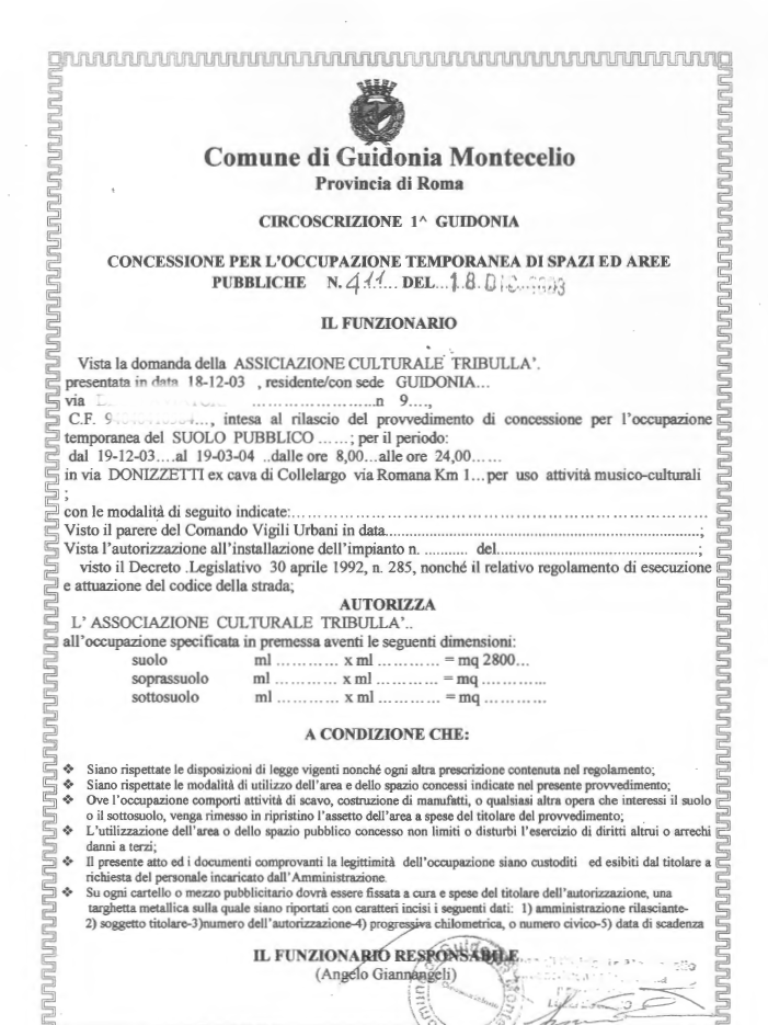 Si tratta di concessioni che si riferiscono a diversi anni e periodi, alcune solo per qualche giorno e altre più lunghe che hanno permesso anche l’installazione persino di una tensostruttura, uno studio musicale per prove e audizioni che in maniera continuativa era stato piazzato indisturbato (quello si) perlomeno dal 2003 al 2004, in pieno periodo oggetto di rivendicazione dal vaccaro.