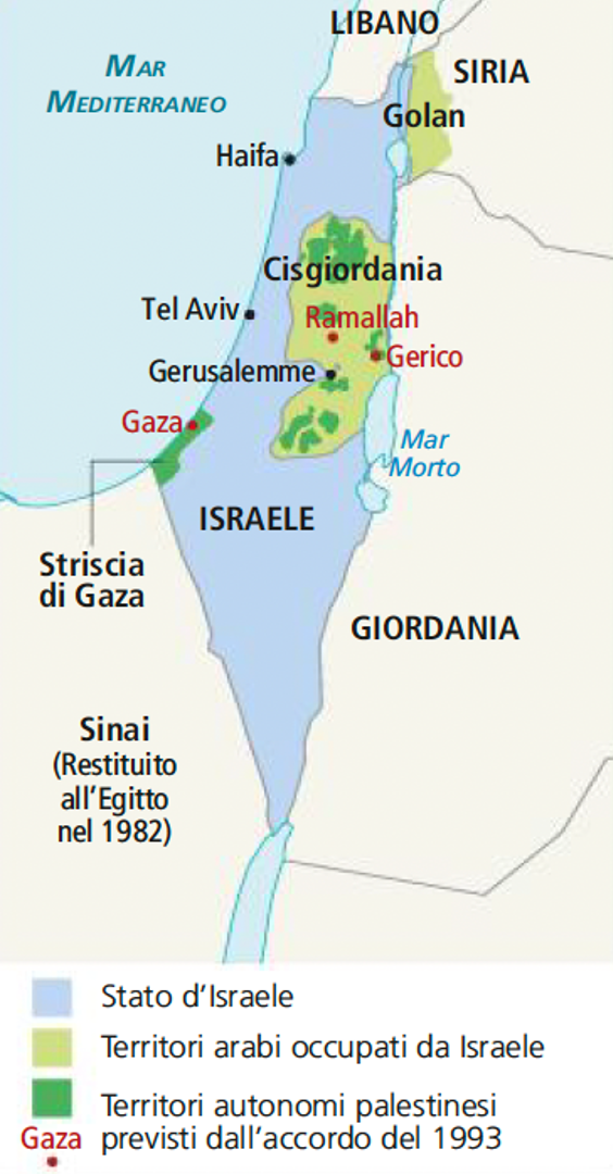 Nel 1993 verrà firmato il Primo Accordo di Oslo fra Israele e Olp che stabiliva principi di autogoverno: L’Anp (Autorità Nazionale Palestinese), neocostituita  e controllata dall’Olp veniva incaricata di amministrare aree della Cisgiordania e Gaza, con fasi successive verso una soluzione definitiva. Gerusalemme, rifugiati, insediamenti, confini rimanevano ancora da definire. Nel 1995, il Secondo Accordo di Oslo stabiliva la divisione territoriale in aree A, B, C nei territori palestinesi; alcune città e villaggi sotto controllo palestinese, ma i territori più strategici e gli insediamenti rimanevano sotto Israele.