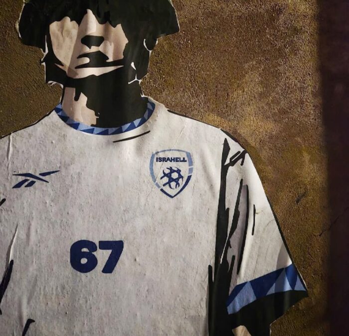 Laika, sempre attenta al dettaglio, scrive sulla maglia “Israhell”, giocando con la parola “hell”, “inferno”, mentre sul pallone insanguinato in arabo è scritto “Gaza”.  “L’opera denuncia” scrive Laika in un commento a corredo del post sul suo profilo instagram “anche l’uso della cultura calcistica da parte dei soldati israeliani come strumento di propaganda e oppressione nel genocidio a Gaza e nei territori occupati soggetti a regime di apartheid”.